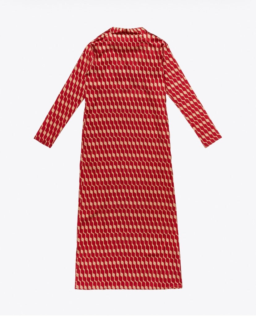 Long patterned dress in pure viscose with a front detail. Fits impeccably and features pockets.